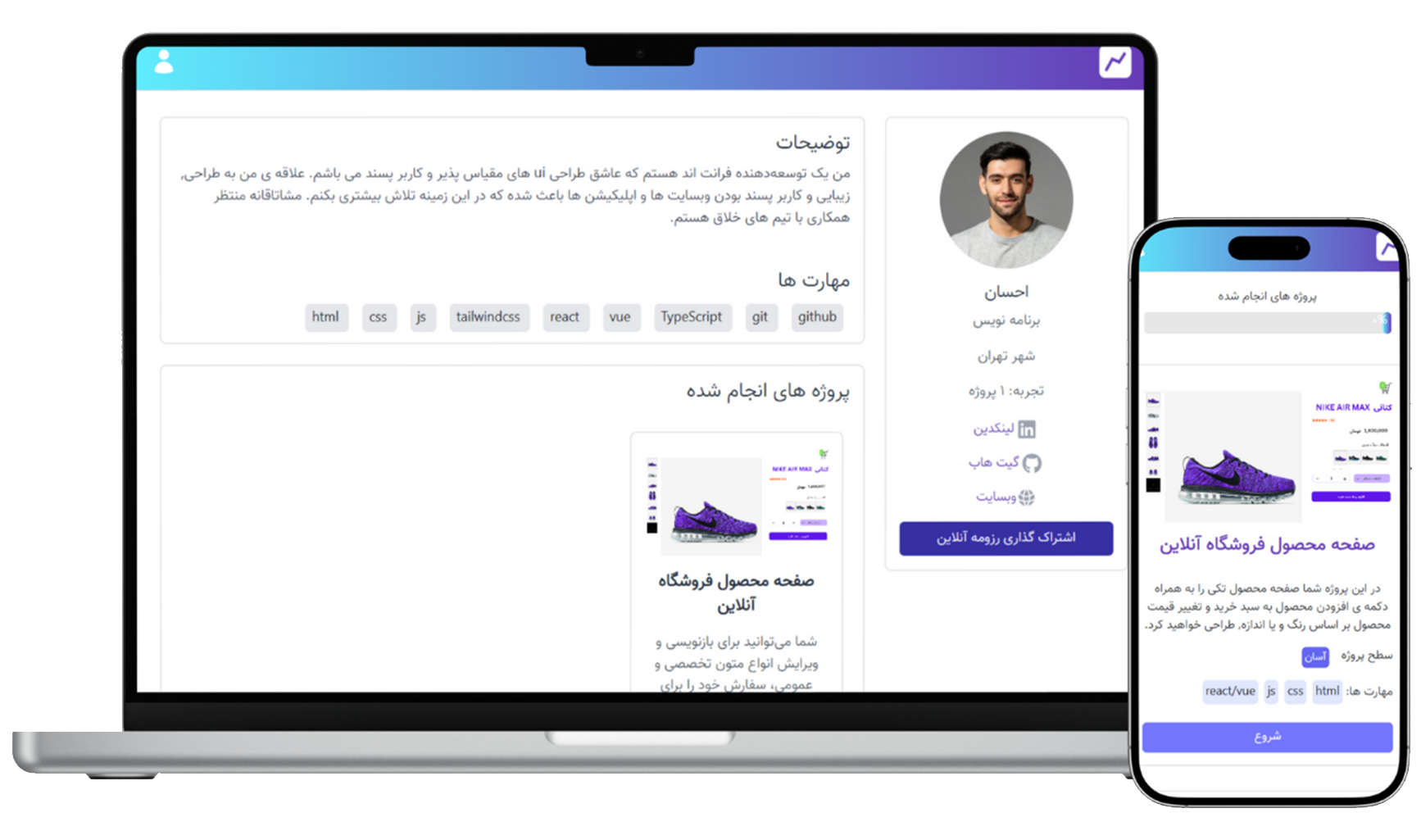 با آپلود پروژه های انجام شده در حساب کاربری خود, می توانید بخش نمونه کار ها را بسازید و برخلاف رزومه های سنتی, کارفرما قادر به دیدن تصاویر پروژه ی شما خواهد بود
